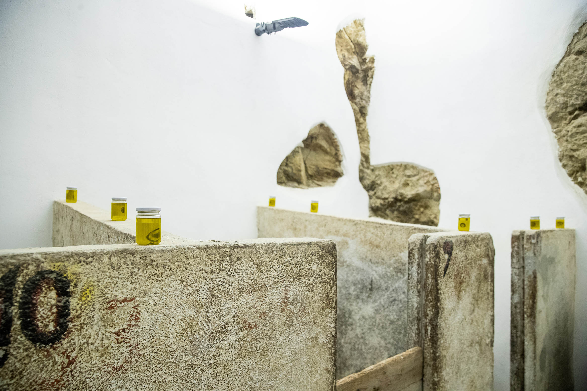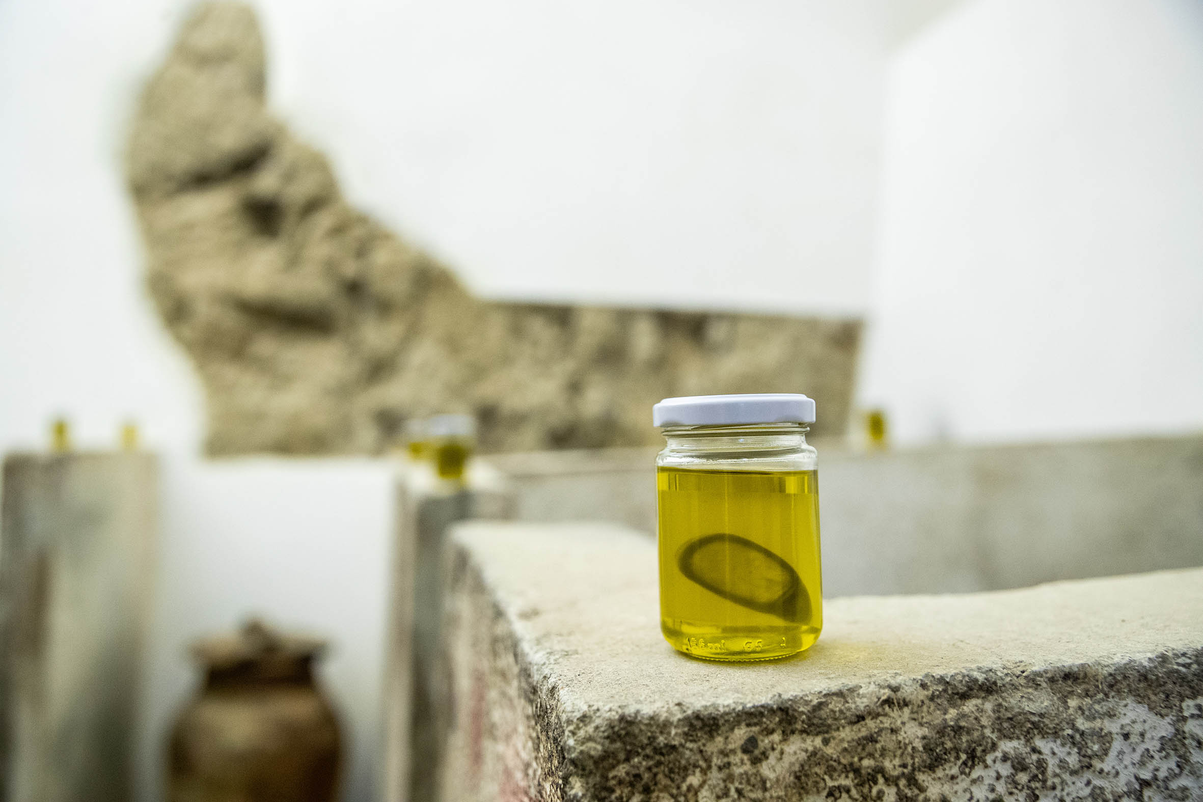 UNTITLED — Project for the artistic residency of SITU FESTIVAL, organized by Blue Institute of Futures, Fondazione Oelle, Fondazione Brodbeck, and the Municipality of Ficarra. This project was carried out in collaboration with visual artist and photographer Margot Kalach, and consisted of collecting the footprints of Ficarra’s inhabitants using silver photographic paper printing techniques and analog processes. In a performative action, we gathered the prints and preserved them in olive oil jars, paying tribute to the region’s deep-rooted olive oil tradition and expressing the desire to preserve a town fighting against disappearance, like many others in Italy. This “Ficarra preserve” symbolizes collective memory and cultural resistance. The project was exhibited at the Olive Oil Museum of Ficarra.